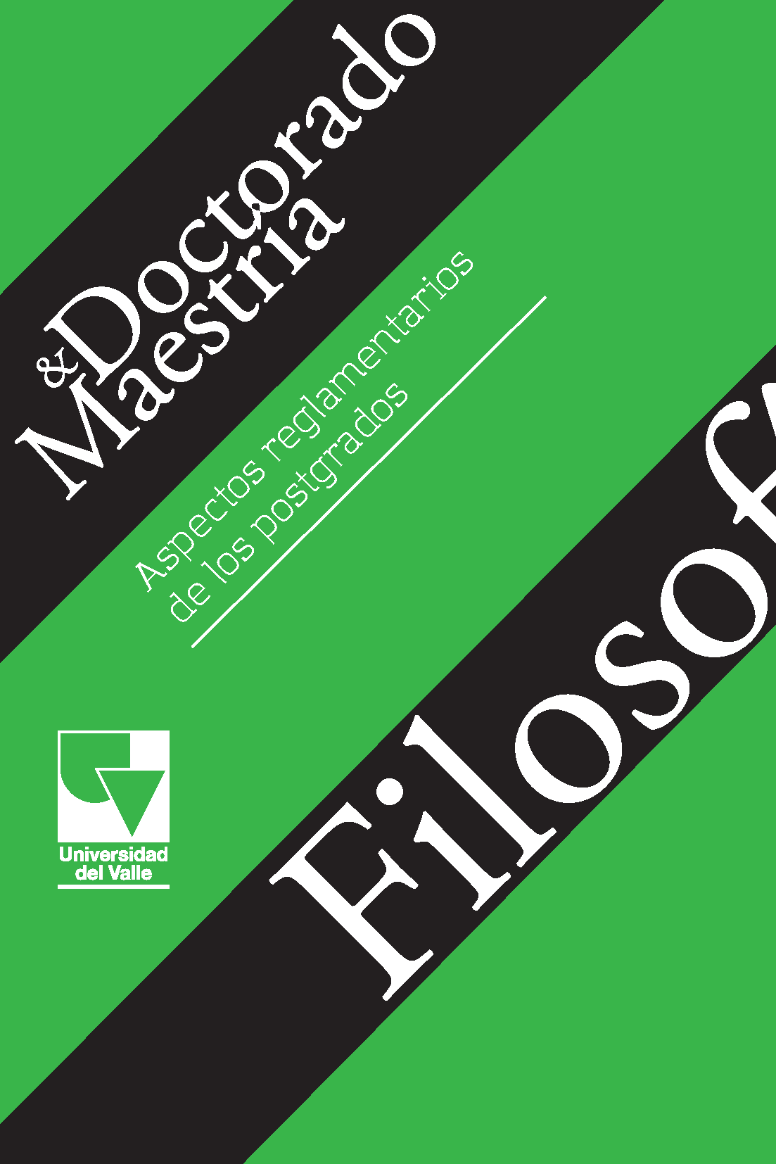 En el folleto Aspectos reglamentarios de los posgrados, usted podrá consultar las principales Resoluciones y Acuerdos, expedidos por el Consejo Superior, el Consejo Académico y la Rectoría, que hacen referencia a las diversas normas que rigen los procesos académico-administrativos de los postgrados a nivel de la Universidad del Valle y, en particular, los programas de Maestría y Doctorado en Filosofía.