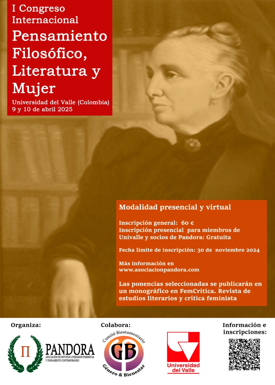 La Asociación Pandora y el Comité de Género y Bienestar Estudiantil del Departamento de Filosofía de la Universidad del Valle se enorgullecen en presentar el I Congreso Internacional Pensamiento Filosófico, Literatura y Mujer.